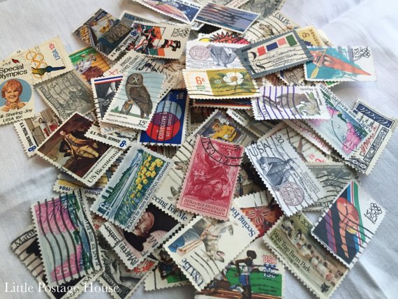 This listing includes 100 USED postage stamps, off paper, that are ready to be used in your projects! You will receive a hand selected package of 100 postage stamps, which may or may not include some of stamps in the pictures above.