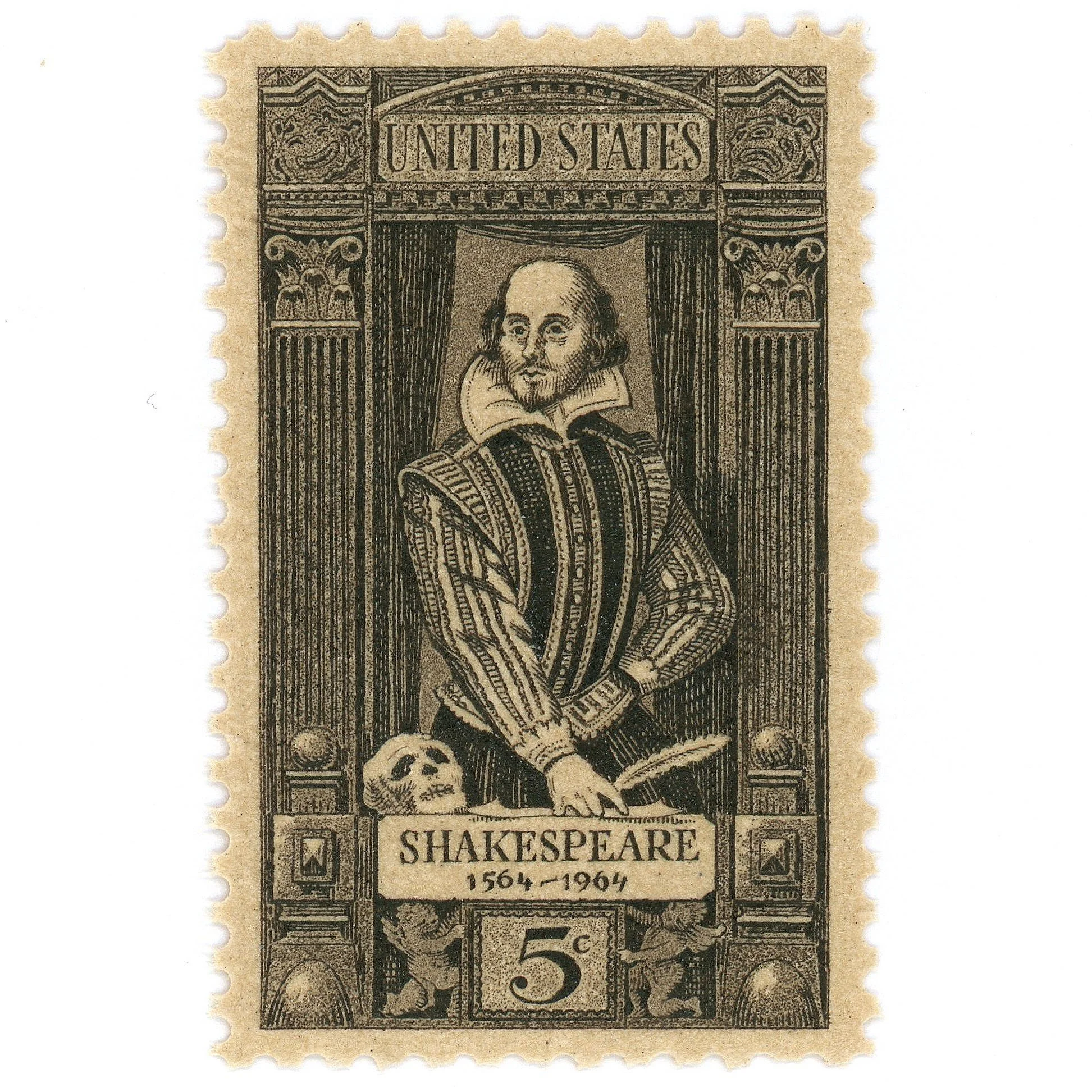 The 5 cent "William Shakespeare" postage stamp was issued in 1964. The vintage postage stamp would issued to celebrate the 400th anniversary of William Shakespeare’s birthday.