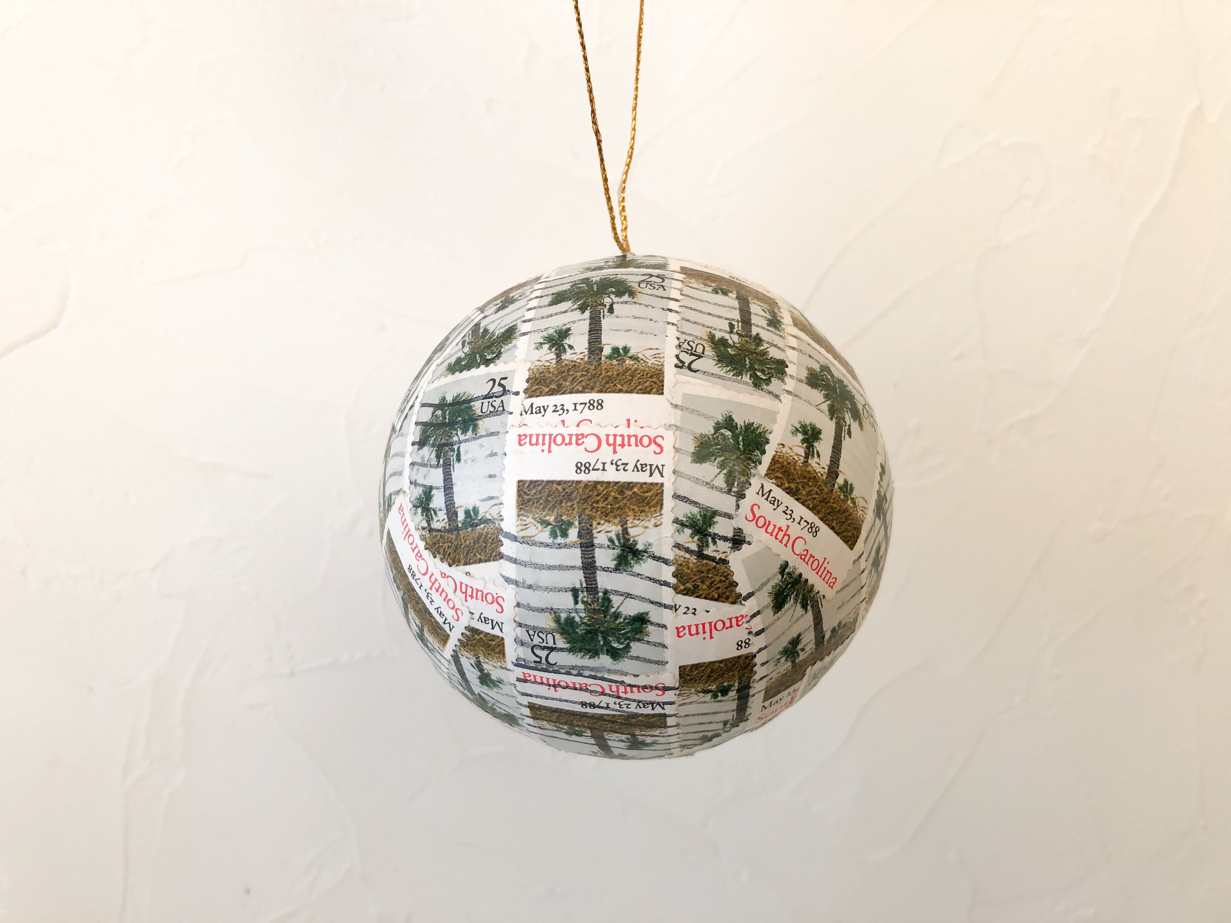 Our Postage Stamp Ornaments will make a beautiful gift for your loved ones this upcoming holiday season! We repurpose and recycle used postage stamps to create beautiful and one-of-a-kind ornaments. Each ornament is carefully handmade in our studio using over 20 used vintage postage stamps!